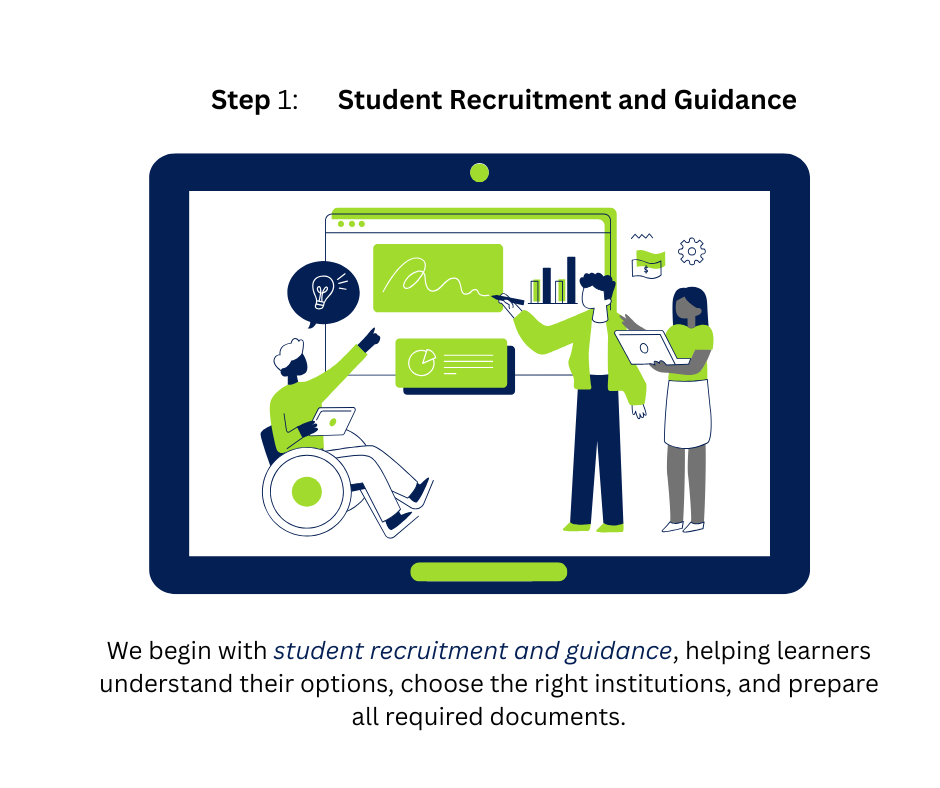 Throughout their studies, learners receive ongoing academic and financial support, including check-ins, advice, and student success services.